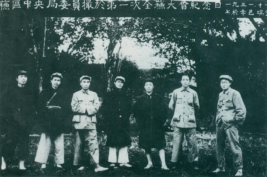 1931年1月15日,中共苏区中央局在中央苏区的宁都县黄陂成立,周恩来任书记。周恩来未到职前,由项英代理,同年10月以后,由毛泽东代理。图为苏区中央局委员合。