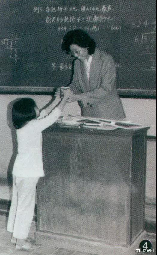 1985年1月21日,人大常委会确定9月10日为教师节。图为小学生课后给老师送上一杯热茶。
