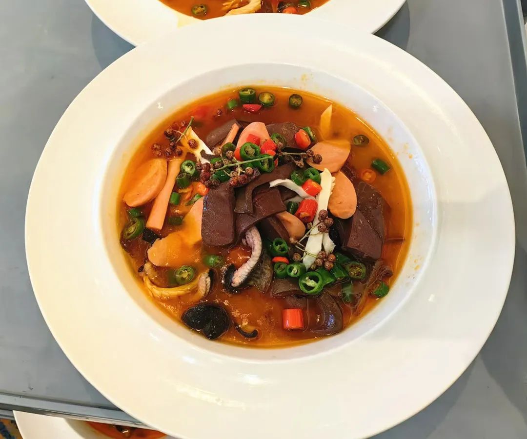 晚宴开始前,各烹饪大师在厨房内开启了自己对凯里酸汤的解密之旅,他们拿着虾仁、干丝、血旺等食材,并结合地方菜系,与凯里酸汤来了一次奇妙的碰撞,为此次“解密凯里酸汤”晚宴带来一次全新的味觉享受。