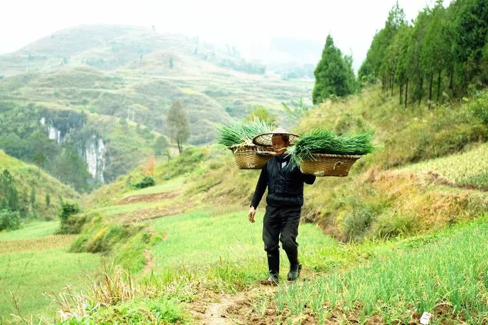 湾水镇米薅村葱农吴国辉在搬运“凯里香葱”(李靖 摄)